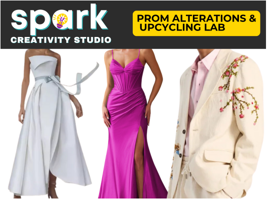 This Prom Alterations & Upcycling Studio offers high school students a supportive, hands-on space to tailor and transform their prom dresses or suit jackets with guidance from experienced instructors. Over two consecutive Saturdays, students may attend one or both open studio sessions to work on alterations such as hemming, taking dresses in or out, adjusting straps, or making artistic modifications. The open-studio format allows participants to receive individualized support while working at their own pace and receiving creative input as needed. Whether students are making simple fit adjustments or exploring subtle upcycling ideas, the goal is to help each participant feel confident, comfortable, and excited about wearing a dress that truly fits and feels like their own. It's not just about adjusting or relocating straps on dresses or changing the length. Suit jackets can be elevated too, with custom linings and button swaps to expressive stitching and personal details, suit jackets can be reimagined in ways that feel modern, meaningful, and uniquely their own. This studio is about empowering students to step into prom night wearing something that fits well, feels intentional, and reflects who they are.